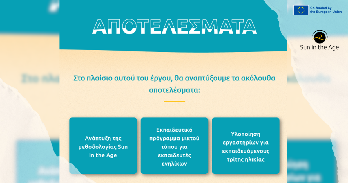 Η σύμπραξη του Sun in the Age έχει ήδη αναπτύξει στα αγγλικά, το 1ο αποτέλεσμα του έργου, που είναι ένας ολοκληρωμένος οδηγός για πρακτικές ενσυνειδητότητας σε διάφορες ευρωπαϊκές χώρες. Το έγγραφο χωρίζεται σε διάφορες ενότητες, όπως το θεωρητικό υπόβαθρο και η ερευνητική βάση στην οποία στηρίχθηκε, οι καλές πρακτικές και οι μελέτες περιπτώσεων από τις διάφορες Ευρωπαϊκές χώρες και ένα πρόγραμμα σπουδών. Σύντομα το έγγραφο θα είναι διαθέσιμο στον ιστότοπο του έργου στα Αγγλικά και επίσης στις εθνικές γλώσσες των εταίρων.
