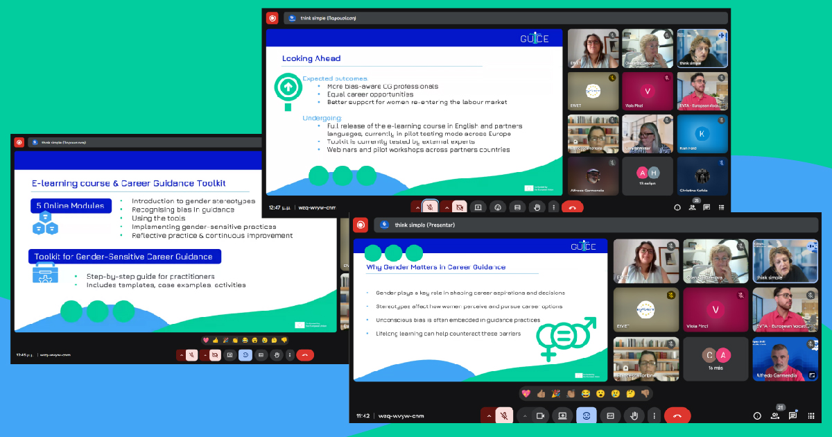 Hosted by GE TF, the session featured p-consulting.gr introducing GUIDE’s objectives, tools, and deliverables—including its interactive tools for stereotype identification and decision‑making styles, the comprehensive training modules, and the Career Guidance Toolkit. Following our invitation, several partner organisations also joined the webinar live, and our new intern—hosted through our collaboration with ACHADE within EDIFY EDU project’s implementation—attended to gain insight into career guidance practices and the GUIDE tools.